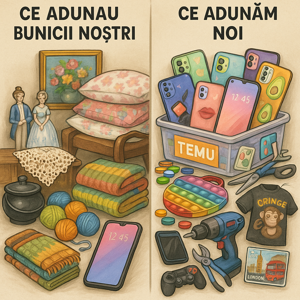Pentru că trăim în era „cumpăr pentru dopamine hit și arunc când nu mai e fun”. Dar hai să fim sinceri: de câte ori n-ai găsit la curățenie o lamină de ras din 2012, un deodorant expirat de 3 ani, sau 5 carcase goale de parfumuri „de colecție”?